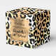 Un motif d'impression léopard sauvage sur une boîte de faveur carrée de 2" présente votre message de remerciement sur une feuille d'or faux sur le devant en lettrage chic. Beau pour les faveurs de douches de mariée, les boîtes de faveur de fête d'anniversaire de femme et plus encore. ARTICLES correspondants dans notre magasin.