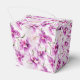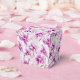 La boîte de faveur de fête est présentée avec une belle impression florale d'orchidées violettes.