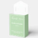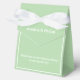 Cette boîte de friandises est présentée dans une élégante couleur sauge.