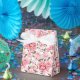 La boîte de cadeau de fête est présentée avec une belle impression florale de pivoines roses.