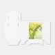 La boîte de faveur de la fête est affichée dans une belle impression photo freesias jaune avec des exemples de noms. Customisez cet objet et changez les noms et la date à votre place. Stock Imprimer freepik.com