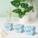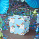 Boîte de faveur de la fête montrée dans une couleur bleu clair avec un dessin mignon arc-en-ciel unicorne imprimé. Customisez cet article ou achetez tel quel et ajoutez un joli ruban.