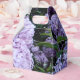 Toutes les boîtes de faveur style fêté sont jolies, avec des lilas violets luxuriants et des feuilles de printemps vert foncé la décorent. Dramatique et attirant l'oeil, cette boîte de faveur de fête fait un grand accent à toute occasion!