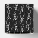 Boîte de favoritisme de fête affichée avec un squelette d'Halloween imprimé sur tous les panneaux. Parfait pour les cadeaux d'Halloween. Customisez cet objet ou achetez tel quel. Astuce : Ajoutez simplement vos bonnes friandises et ajoutez du ruban d'Halloween mignon. Nous offrons également un ruban correspondant.