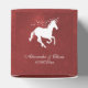 Personnalisez une boîte unique pour les invités avec cette boîte unique Red Unicorn Wedding Favor Box. Le design ballotin présente un arrière - plan étoilé avec une licorne ornée d'étoiles. Personnalisez avec les noms du marié et de la mariée avec la date du mariage. Papier à lettres mariage supplémentaire disponible avec cette conception aussi.