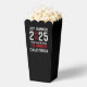 Célébrez la Classe de 2025 en style avec ce ballotin pop-corn moderne et audacieux de graduation avec typographie blanche frappante avec votre année de classe, le nom de l'école, la ville (en rouge), et l'état, ce design élégant fait une offre de fête parfaite pour tout diplômé. Le mot "Graduate" remplace le zéro en 2025 dans la typographie rouge plus fine, ajoutant une touche unique et élégante. Idéal pour les fêtes de fin d'études secondaires et collégiales. Customisez le vôtre aujourd'hui !