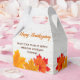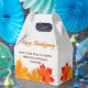 Cette élégante boîte de faveur de fête de Thanksgiving d'entreprise moderne dispose d'une belle ligne de feuilles d'automne sur un arrière - plan en bois blanc. Personnalisez avec vos informations d'entreprise sur le devant en orange et marron pour un cadeau de vacances classe à envoyer aux clients. Customisez avec votre entreprise et votre message personnalisé.