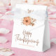 Bouquets floraux aux couleurs de l'automne et la typographie de scénario informel, Bon thanksgiving, pour une touche moderne pour vos faveurs de fête. Les fleurs et le feuillage sont dans les tons automnaux d'orange, de marron et de crème. Personnalisez facilement avec vos noms ci-dessous. Un bouquet assorti est également plus grand à l'arrière.