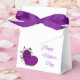 Une petite boîte cadeau style sac avec un joli arc violet en haut, "Fête des Mères heureuse" et un beau scroll travail coeur violet en bas. (Toutes les mamans ont gagné un coeur violet à un moment donné!) Sur le dos est écrit "Je t'aime." Il peut être utilisé pour un petit après le dîner sucré, un cadeau délicat de bijoux ou de nombreux autres cadeaux.