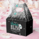 Lancez la fête avec ces boîtes de faveur amusantes "Disco Bachelorette" en argent scintillant et sarcelle sur fond noir. La typographie accrocheuse "Boots & Bling", le chapeau de cowgirl scintillant sont accentués par une bordure à franges argentées. Ajoutez votre nom et la date de l'événement en utilisant le modèle fourni. Recherchez ID925 pour voir d'autres produits de la collection tendance.