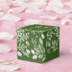 Ces boîtes de faveurs de 2'' carré vert sont dotées d'une élégante feuille blanche et motif point, les mots "Merci" et vos noms en lettres blanches chic sur le dessus. Parfait pour votre mariage, douche nuptiale, anniversaire, Noël ou toute occasion spéciale. Objets et plus de couleurs dans notre collection.