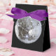 Style tente noire avec ballotin ruban violet avec l'image d'une boule disco miroitée éblouissante. Changez le ruban en argent pour un look plus élégant. Voir invitation, enveloppe, confetti, sac de faveur, étiquette de faveur, étiquette, autocollant rond et papier d'emballage. Voir toute la collection de Ballotins Disco les années 70 dans les TOUCHES SPÉCIALES | Section Favoris.