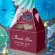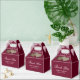 Mettez vos cadeaux de mariage ou de douche nuptiale dans ces romantiques ballotins bordeaux rustiques avec dentelle et lampes à cordes sur un arrière - plan burlap.