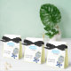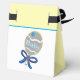 Élégant hochet argenté en vert tendre avec une étoile bleue et un arc faux perlé. Baby shower maman-to-be Nom typographie en bleu. Insérer la date de Baby shower. Un bébé doux est en route en écriture noire. Arrière - plan jaune et blanc pastel avec bandes géométriques bleues. Conception d'oeuvres originales par TamiraZDesigns