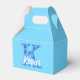 Nom du garçon avec lettre K initiale. Arrière - plan bleu. Impression motif plaid bleu. Ballotins décoratifs. Modifiez le nom pour customiser. Décor de fête.