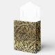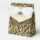 Lustre Art Déco noir, ballotin doré avec un lustre noir, motif damassé floral noir et doré, couleur beige/écru uni avec bande dorée. Ce design élégant est une approche moderne d'un style vintage/rétro qui ressemble à celui des années 20 et du Grand Gatsby. Il fait partie d'un ensemble mariage et est entièrement personnalisable.