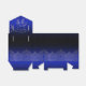 con fondo medio negro y medio azul y Decoración estilo oriental dorada en la parte de inferior y con la misma decoración homos hecho dos pájaros con el mismo estilo de la parte superior y para finalizar un toque de estrellas alrededor.