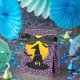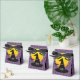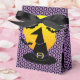 Commencez votre fête d'Halloween avec un ballotin amusant et coloré. Ce ballotin a un arrière - plan violet avec des cercles noirs. Les deux panneaux latéraux ont un balai de sorcières. Un devant de la boîte il y a une lune d'orange dorée, avec les silhouettes de trois chauves-souris. Le dos de la boîte a la lune orange et le texte qui dit "Trick or Treat Goodies" Ce texte peut être customisé.