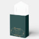 Celestial Green Soleil Soleil Lune Astronomie Mariage Favor Boxes dispose d'un élégant soleil doré, lune et étoiles avec un cadre doré sur un arrière - plan vert. À l'intérieur, ajoutez vos informations de ballotin personnalisées comme "Merci pour partager notre journée spéciale avec nous" avec vos noms et votre date de mariage. Conçu par Evco Studio www.zazzle.com/store/evcostudio