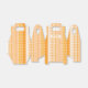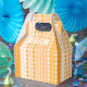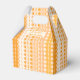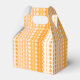 Cercles et points sur des rayures de différentes nuances d'orange, du orange foncé au pêche pastel. D'autres types de boîtes-cadeaux avec ce design sont également disponibles dans d'autres couleurs.
