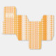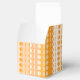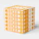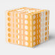 Cercles et points sur rayures dans diverses nuances d'orange, du carotte foncé au pêche pastel. D'autres types de boîtes cadeaux avec ce design sont également disponibles dans d'autres couleurs.
