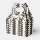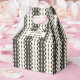 Cercles et Points sur rayures en deux nuances de crème et de charbon (presque noir). D'autres types de boîtes-cadeaux avec ce design sont également disponibles dans d'autres couleurs.