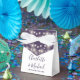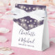 Elégante boîte de faveur de mariage violet avec de jolies lumières à cordes, des noms de script de signature élégant et date spéciale ensemble dans la typographie chic. Vous pouvez le personnaliser avec votre propre message de remerciement sous le couvercle. Une façon parfaite de remercier vos invités ! Conçu par Thisisnotme©