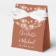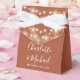Élégante boîte de faveur de mariage en terre cuite avec de jolies lumières à cordes, des noms de script de signature élégant et date spéciale dans la typographie moderne. Vous pouvez personnaliser avec votre propre message de remerciement sous le couvercle. Une façon parfaite de remercier vos invités ! Conçu par Thisisnotme©