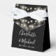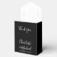 Élégante boîte de faveur de mariage noir et blanc avec de jolies lumières à cordes, des noms de script de signature élégant et date spéciale ensemble dans la typographie moderne. Vous pouvez personnaliser avec votre propre message de remerciement sous le couvercle. Une façon parfaite de remercier vos invités ! Conçu par Thisisnotme©