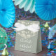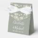 Elégante boîte de faveur de mariage verte sauge avec de jolies lumières à cordes, des noms de script de signature élégant et date spéciale ensemble dans la typographie moderne. Vous pouvez personnaliser avec votre propre message de remerciement sous le couvercle. Une façon parfaite de remercier vos invités ! Conçu par Thisisnotme©