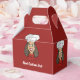 Chef avec casquette, collier rouge et texte personnalisé.