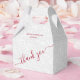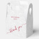 Elégant blanc sur blanc imprimé motif avec vos noms et merci en rouge canneberge chic (ou toute couleur) en lettrage sur le devant, ces boîtes de faveur de soirée de style gable sont belles pour les faveurs de mariage, de la douche nuptiale ou toute occasion spéciale.