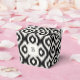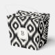 Motif textile élégant et chic Ikat diamant noir/ivoire blanc, motif traditionnel ethnique avec plaque de livre carrée et monogramme / initiale de nom.