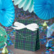 Motif écossais traditionnel en plaid dans les tons vert et bleu avec des tons rouge, blanc et noir.