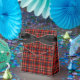 Motif écossais traditionnel coloré en rouge vif, avec des tons noir, blanc, bleu, vert et jaune.