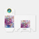 Coloré, fantaisiste, drôle clown rose jouant de la trompette avec un hibou expressif et des notes musicales joyeuses, fleurs, feuilles dans des couleurs rouge vif, fuchsia, violet, violet, bleu, blanc, peinture à l'aquarelle par Bulgan Lumini (c)