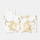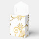 On y voit un ballotin de style tente en blanc avec un motif de coeur imprimé couleur dorée et un imprimé à motifs floraux partout. Embellisté avec un ruban blanc en haut. Les jeunes mariés portent des noms de chaque côté du coeur et le nom de famille à l'intérieur du coeur. Customisez cet objet ou achetez comme indiqué.