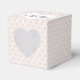 Cœur blanc avec les noms des jeunes mariés sur un motif de cœur rose fardé.