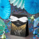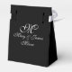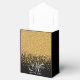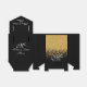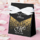 Une boîte de faveur simple et élégante en noir de minuit avec une touche de confettis dorés et un ruban et lettrage blancs contrastés. Vous pouvez la personnaliser en cliquant sur le menu de personnalisation. Cela fait partie d'une suite de mariage luxueuse qui peut être entièrement personnalisée.