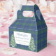 Tartan bleu et vert Plaid Wedding Favor Box design qui fonctionnerait parfaitement pour un mariage d'hiver de décembre.