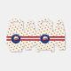 Gâteau de velours rouge avec son givre blanc et un éclat de pourpre sur le dessus, autour de l'éponge écarlate profonde et délicieuse. La tranche est présentée sur un arrière - plan d'un cercle de marine sur une bordure "ruban" crème et écarlate, avec un motif de diamant géométrique derrière. Vous pouvez ajouter vos propres mots et ils apparaîtront à l'avant et à l'arrière.