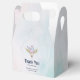 Anniversaire (ou mariage) merci ballotins avec un arrière - plan d'aquarelle turquoise et pastel. Un crâne animal chic boho avec un bouquet floral sur la tête et des petits papillons qui fleurissent.