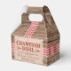 Ce design de style rustique dispose d'un arrière - plan en bois avec ruban rouge et blanc. En plus de cela, il y a une texture de burlap avec serif rouge et noir et une police manuscrite qui est personnalisable à votre événement, que ce soit une ébullition de langouste, homard, fruits de mer ou de poisson. Célébrez votre fiançailles, anniversaire, remise de diplômes ou tout événement en style avec ce design ballotin!