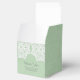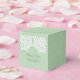 Simple et sophistiqué Elegant Lace Wedding Favor Boxes avec un motif de dentelle blanche sur un arrière - plan de papier vintage faux vert menthe clair. Ces boîtes classiques et élégantes sont parfaites pour un mariage rustique. Facile à customiser avec vos détails mariages. Cliquez sur "Customiser" pour trouver d'autres options de personnalisation.