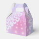 Élégant modèle personnalisé de boîte de faveur de Disco Enterrement de vie de jeune fille dans de belles couleurs dégradées allant du lavande au bleu pervenche et rose avec une boule disco funky, une police rétro glamour et un fond de lumières disco scintillantes. Ce design élégant et sophistiqué est facilement adaptable à tout dîner spécial et/ou événement de danse. Recherchez ID928 pour voir d'autres produits de cette collection tendance.