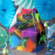Un abstrait de rêve aux tons vifs de jaune, vert, rose, violet, bleu, turquoise, orange, noir et plus ornent ces ballotins amusants.