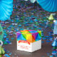 Design coloré avec un défilement et un texte qui dit : "Merci !"