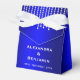 Une belle boîte cadeau de mariage bleu royal avec un thème diamant et perle, avec des cordes de perles accrochées au sommet, et un diamant pétillant et unique sur le dos. Tous les détails peuvent être facilement changés pour convenir. Ces magnifiques ballotins bleus paraîtront superbement dispersés sur les tables d'accueil de mariage, et feront une belle impression sur vos invités mariages !