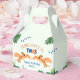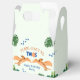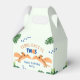 Drôle dinosaure 2ème anniversaire boîte de faveur avec le bleu vert et orange schéma de couleurs et le thème safari. Personnalisez-le avec les détails de votre événement. Conception Unisex pour un garçon ou une fille.
