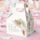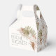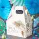 Cette création présente une imagerie florale bohème neutre avec des feuilles de palmier, des plumes et une police rétro audacieuse.